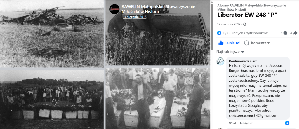 Historia lotu samolotu Liberator EW248 P i ocalałego por. pil. Johannesa Groenewalda: